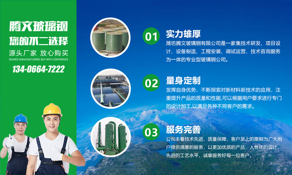 濰坊騰文玻璃鋼有限公司是一家集技術(shù)研發(fā)、項(xiàng)目設(shè)計(jì)、設(shè)備制造、工程安裝、調(diào)試運(yùn)營、技術(shù)咨詢服務(wù)為一體的專業(yè)型玻璃鋼公司